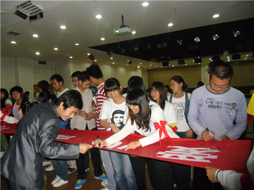 接着,由支农爱心储蓄项目组副组长侯云飞负责解说,通过幻灯片和视频放映的形式向大家介绍了受赠学校的情况。学校所在的地区全是高山,教室和老师的办公室是简陋的土坯房,“真荒凉”的感叹声不住地从观看人群中传出。并不明亮的教室中只有零星几个学生,但老师们依旧负责,简陋的设施和匮乏的教学资源并不阻碍孩子们对求知的渴望,一双双渴求知识的眼睛让人难忘……正是孩子们的需要,正是支农人的社会责任感,正是一颗颗火热的奉献之心,我们开始了爱心储蓄,大家加入到了爱心储蓄活动之中,我们携手共进。