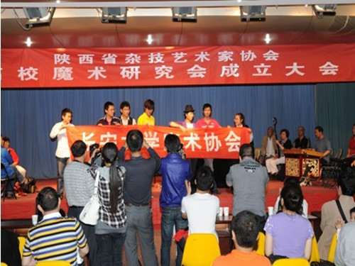 2011年5月21日下午两点,陕西省高校魔术专业研究委员会成立仪式在长安大学雁塔校区多功能厅正式召开,长安大学团委书记张骞文,陕西省杂技家协会主席贾云鹏,副主席岳勇,中国工程院院士李佩成等人,省杂协多位老一辈表演艺术家,还有陕西各高校的魔术社负责人,职业魔术师参与此次成立仪式。西安各大媒体进行了相关的报道。我们魔术协会也有幸参加了此次会议,并参与了演出。