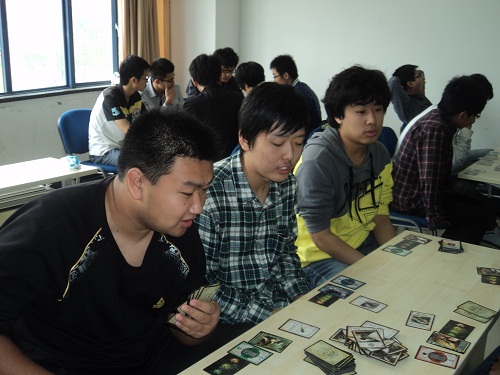 此次比赛的初赛为淘汰赛,三局两胜制;决赛为循环赛,采用积分制。初赛在 5月21日 全天进行。上午在选手签到,排好座位后,比赛于上午9:00正式开始。为了比赛的公平性,每场比赛都备有裁判,监督比赛过程。三国杀3V3比赛主帅坐镇中央,前锋一左一右分列阵前,比赛过程中队员之间不能进行交流,因此,队友们的作战全靠平时修炼的信任与默契,当伙伴们心有灵犀的打出流畅的组合技,比如:华佗,刘备(郭嘉),孙尚香:强回复组。华佗主帅,依靠十分强力的回复能力将战斗拖延到时间到,或者将对手士气耗尽,依靠香香的爆发力,给对手致命一击。三国杀最大的乐趣莫过于出“杀”,让对手惨痛“掉血”,“借刀杀人”,装上“诸葛连弩”,无限放“杀”,扫射对手,无“闪”则掉血,玩家热衷于运用人物技能,诸葛观星,甄姬洛神。“乐不思蜀”玩的不亦乐乎,“过河拆桥”,“顺手牵羊”,玩家纷纷给自己加强武器装备,增强战斗实力,消灭对方主帅,赢得胜利。下午14:30又是一场激战,最终于下午17:30,十强队伍新鲜出炉。