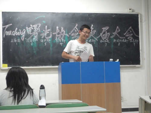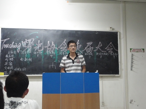 晚7点半,大会准时开始。首先,由社团主席李善华做简单的发言,表达了对大家的鼓励和期望,并简要说明了本次大会的安排与竞选流程,随后,便将竞选的舞台交给了大一的同学们。