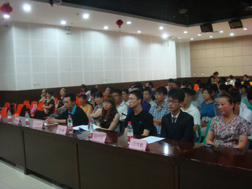 晚七点半,仪式正式开始。黄土地文化社现任主席胡学伟代表社团致辞。他首先对大家的到来表示了感谢,接着简单介绍了社团的成立、发展状况,并对举办此次活动的原因、目的、意义做了说明,最后,他宣布了社团与后勤集团的下半年合作计划,如组织后勤工作人员学习秧歌腰鼓、舞龙表演等。团委李瑾老师、后勤集团何宏女士也分别致辞,对此次活动给予了充分的肯定和高度的评价。