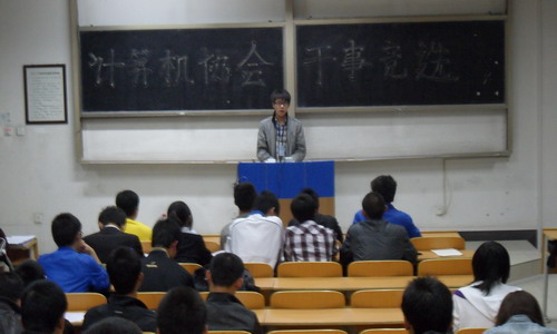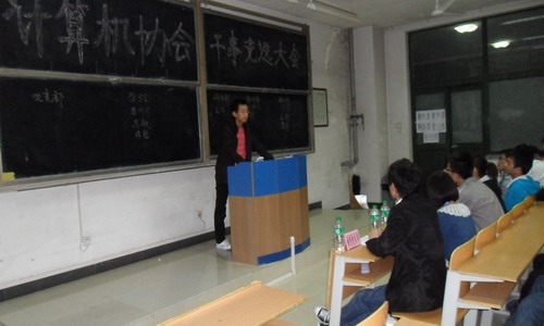 2011年10月13日晚7时,计算机协会在修远3101、3102教室成功举办了计算机协会干事竞选大会。计算机协会10届主席姜浩,10届副主席兼技术发展中心主任贾琛,现任主席张强参加了本次大会。