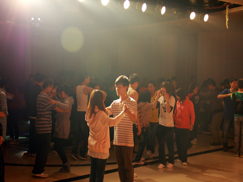 晚上7点,大活一楼人声鼎沸,大家齐聚大活,等待这场盛会的开始。接着,主持人刘晓琴宣布舞会开始。随着音乐的响起,会员们的脚步不由自主的跳动起来。大家激情四射,轻快的脚步调动起每位同学的热情,展示着属于大学生的独特风采。