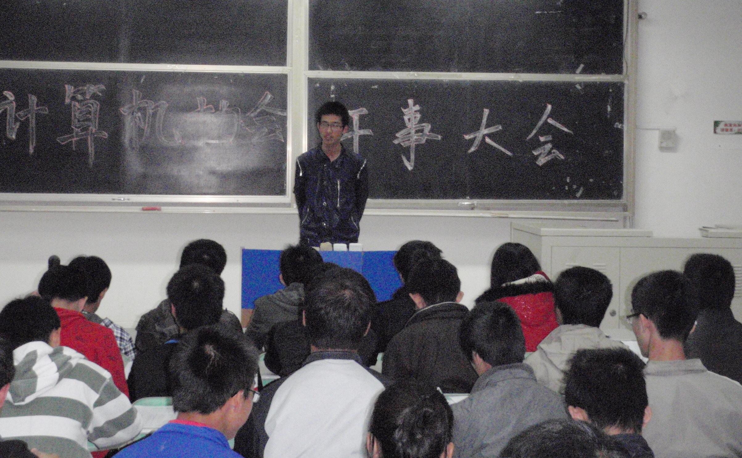 2011年10月26日晚7:00,计算机协会在修远4101教室成功召开第一次干事大会。参加此次大会的嘉宾有计算机协会10届主席姜浩。
