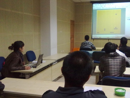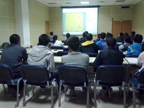 19:00整,本次活动正式开始。协会负责人提前到场,布置场地,为参与培训的同学发放围棋教材,从而使得本次活动井然有序地开展。虽然围棋的爱好者众多,但是对围棋有着深入了解的甚少,因此,第一期的围棋培训就从最基本的入门知识开始讲起。我协会邀请围棋专业人士作为参与围棋培训会员的指导老师。老师利用多媒体教授围棋,以PPT的形式从动态方面直观地讲解围棋的有关知识。老师先讲解围棋的历史起源,棋盘,围棋的规则,棋盘上的方格,共有361个交叉点,每个交叉点可放棋子一枚,天元,何为气,怎样判断有几口气。重点讲解打吃,以棋局为例,若黑子与白子分别行棋,怎么样围住对方,提对方的子,为自己的行棋服务。