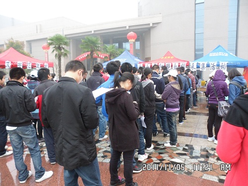 2011年11月5日 ,长安大学希望阵营联合陕西省红十字会,在长安大学渭水校区东西区食堂门前举行了隆重的造血干细胞血样采集活动。活动从早上九点开始,医护人员刚一到达,很多路过的同学便热情的过来咨询捐献流程,并马上填写了捐献表,自动排好了两列纵队,准备造血干细胞血样的采集。