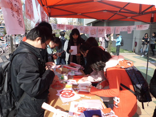 本次活动得到了长大学生的积极响应。展览桌周围围满了希望学会剪纸的学生。他们有的用铅笔在红纸上描摹图样;有的操一把剪刀剪出繁杂的花纹,有的盯着展览的剪纸,望眼欲穿;有的自娱自乐的随意游走剪刀。在展开红纸之前谁也不知道有什么样的惊喜。同学们学习剪纸的热情同火红的剪纸一样,带给人温暖,驱散了冬日的严寒。虽然持续到天黑,但主席、副主席、部长、成员都到了现场,每一个工作人员都为这次活动的成功举办感到由衷的开心。