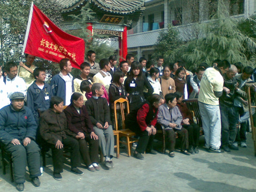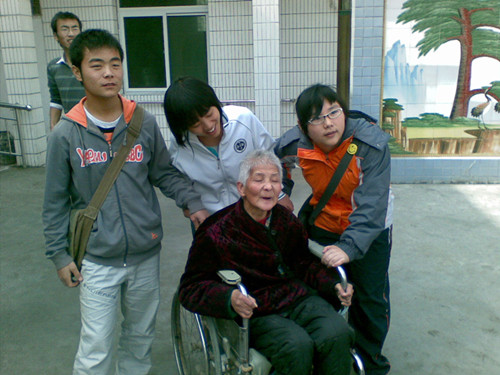 11月25日,阳光青年社50余名志愿者在主席杨光等人的带领下,带着我们的爱心,来到西安市草滩镇敬老院。10点30分,大家在院子里有阳光的地方摆放好椅子并搀扶老人坐到椅子上,开始为老人表演事先准备好的节目。