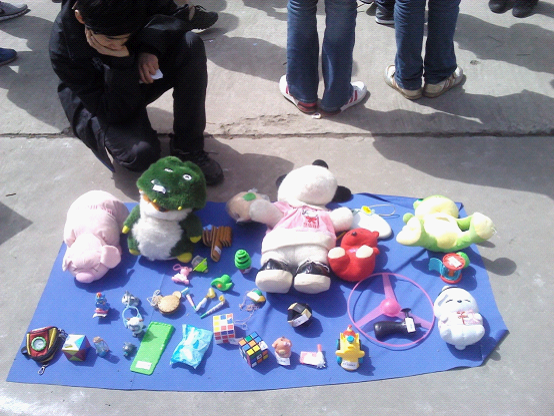 首先由省妈妈环保志愿者协会会长王明英妈妈宣布活动开始,我校自然生灵保护协会的志愿者在现场维护秩序。雁塔路小学的操场上,按班级区域摆满了各类物品,各班都给自己的“商铺”起了响当当的名字。同学们以班级为单位,将家里闲置的图书、文具、玩具、手工制作和一些小物品拿到跳蚤市场上进行义卖。为了卖上好价钱,孩子们各显神通,有自制海报宣传的,有拉起横幅、张贴广告的,有主动促销的。操场上的叫卖声、讨价还价声响成一片,同学们主动兴致盎然在地摊上进行“一对一”交易,忙得不亦乐乎。经过4个小时的热闹交易,活动圆满的拉下了帷幕,共募集捐款5614元。