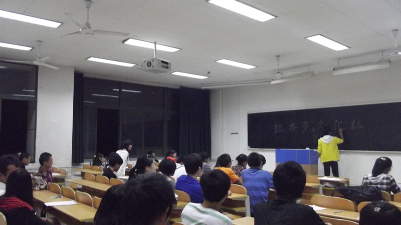 事先大二的同学准备了奖品、灯谜。晚上7:30,大一大二的同学陆陆续续赶到,首先在第一个环节中我们准备了红楼火花纸片与红楼人物诗词,在很短的时间里将随机发放的火花与人物对应上,以这样的形式促进了新成员老成员的了解。接下来,大三的前任主席与团支书上台发言讲述了我社的历程以及对大一大二成员的支持与鼓励,大二社团骨干走上台前表达前一年来自己在社团活动中的所见所闻所思所想,并热烈邀请新成员积极融入红楼梦文化社中来。
