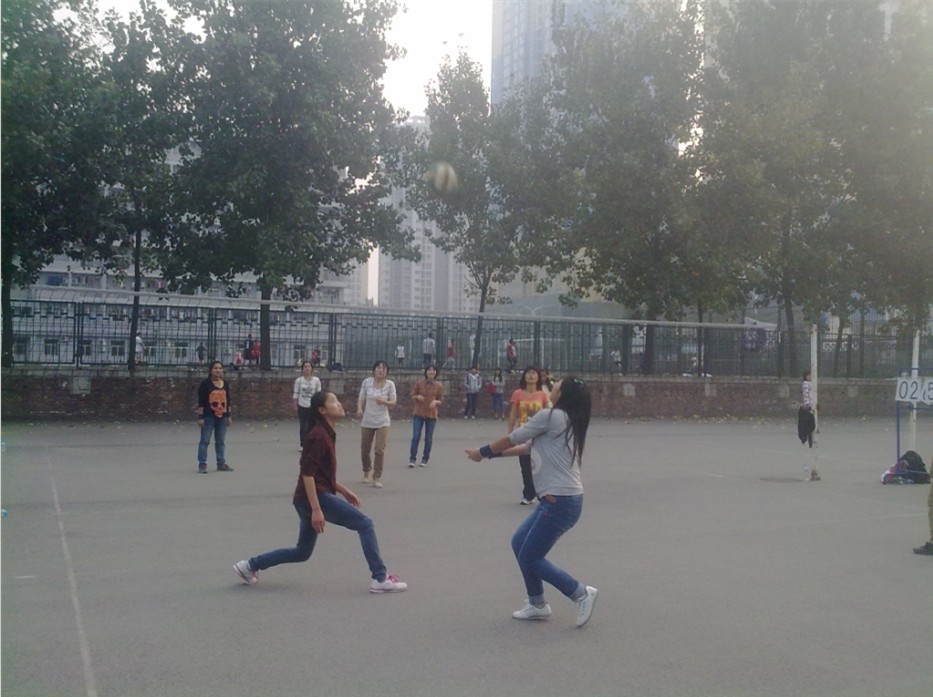 中午11点左右,在长大排协主席张瑞的带领下,我校排球爱好者到达交大东校区,受到交大排协主席褚宏雨的热烈欢迎。随后在交大东校区东南门外聚餐,友好交流。13点左右,进入交大校区。在交大主席的引导下,参赛人员一边散步一边就生活,学习和排球等方面相互交流,来到了排球场。两校主席关于各自协会的基本情况进行交流,社员们则在球场上做赛前热身运动。稍后,西外排协社员到场。简单交流后,交流赛正式开始,先进行的长大与交大男子赛,女子赛。接下来是交大与西外男子,女子赛,最后是长大与西外男子,女子赛。各场比赛中大家热情高涨,活力四射,尽展运动健儿的风采。