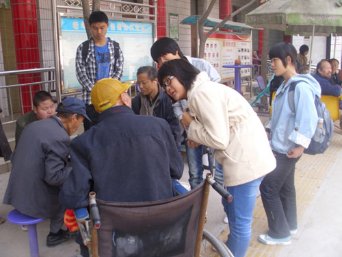 10月20日 上午,长安大学阳光青年社的三十三名志愿者前往西安市北郊的草滩敬老院探望那里的老人。