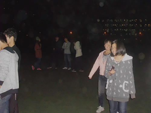 今天是个适合狂欢的日子——万圣节。自习之后,在快9点半时,健身交谊舞协会多数成员怀着激动的心情来到体育场。人数差不多时,我们放起了我们最熟悉不过的音乐——阿拉伯之夜,跳起了我们最熟悉不过的慢摇。一曲过后,人数更多起来了,一些在锻炼的人也加入了我们。接着,我们放了一曲加速版的“阿拉伯之夜”,大家一起狂欢了起来。然后,慢摇“直线八步”闪亮登场,作为既简单又欢快的慢摇,倍受大家喜爱。随后,我们所有人拉成一个大圈,跳起了欢快的兔子舞。经过这三支欢快、简单的舞之后,刚才很冷的感觉荡然无存。接着,我们放起了之前教过的舞的音乐,大家自由舞动。一首首好听的音乐,一支支欢快的舞蹈,一张张美丽的笑脸,一直维持到舞会结束。