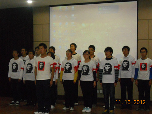 在前六位选手演讲完毕后,为了缓解现场趋于紧张的气氛,支农志愿者协会组织了《切格瓦拉》的歌唱和《感恩的心》的手语舞,有效地调节了后面选手的情绪。
