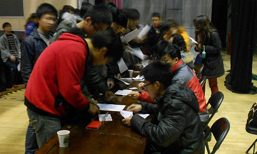晚上6:30,陈伟老师,银行工作人员及各学生助理已按时到达会场,引导各学院学生到指定位置就座。