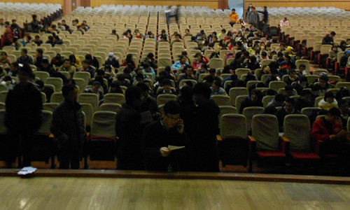 阿晚8:20,签约仪式结束,签约人员依次离开礼堂。本次签约仪式在陈老师,银行工作人员的带领及爱心助学导航站学生助理的配合下,取得了圆满成功,使长安大学家庭贫困学生及时享受到了学校的资助。活动过程中,爱心助学导航站向在场人员展示了他们的风貌及工作热情。至此,本学期长安大学国家助学贷款续签仪式落幕。
