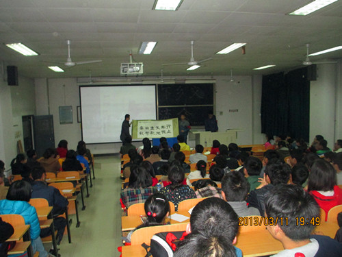 2013年3月11日晚六点半,支农志愿者协会下乡交流大会于修远4101正式开始。与会人员全是此次寒假下乡的人员,所有人员均臂戴红领巾,准时参加本次大会。