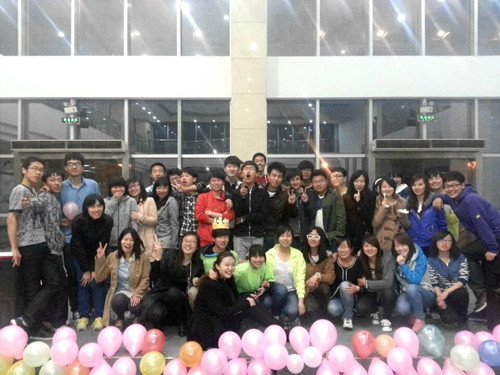 到了快7点,开始有观众了,于是我们跟着音乐跳起了慢摇,因为简单,易学,有趣,部分观众也开始加入了我们。等到七点,开场舞音乐响起,一群帅气的男孩跟着音乐登上舞台,随着他们精彩的表演结束,主持人闪亮登场宣布舞会开始并致辞欢迎。在主持人的依次报幕之后,舞协和其他兄弟社团人员依次为大家带来精彩的伦巴表演,欢快的平四表演,歌曲串烧,精彩的拉丁表演,欢快的吉特巴表演,Cosplay版歌伴舞,近景魔术,优美的华尔兹,每个节目都那么精彩,每个节目都足以为观众留下深深的映象。当然,在我们舞协人自己表演的同时,我们不忘周围观众,在每次交谊舞类节目表演结束后都有个对应舞种的自由舞环节来教给观众一些简单的舞步,更有好玩的游戏穿插其中为观众送上精美的小礼品。节目表演完之后,健身交谊舞成员之一以快递的形式呈上了生日蛋糕,伴随着每个舞协人对舞协的祝福,我们吹灭蜡烛。最后,舞协人员合唱<<最美的太阳>>,完美收尾。接下来的自由狂欢自然是少不了的啦。