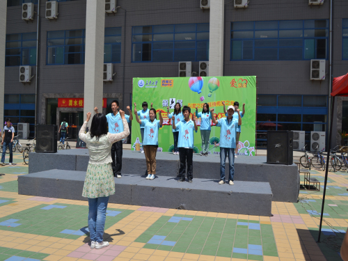 早上10点,树蕙园广场的同学们越来越多,也有好多人对我们展示的物品很感兴趣,甚至买了其中的好几样。又过了一会,就是本次活动的亮点之一了,早上搭建好的舞台已经挂好了本次活动的幕布,主持人宣布本次活动的开始,并有同学上台表演节目,第一个上台表演的是希望阵营的刘永霞,她曼妙的舞姿伴随着悠扬的音乐,吸引了不少人忍着酷晒来到了我们舞台下方,接着,又有一些其他社团的成员表演了精彩的节目,让全场的气氛一下子嗨了起来,更重要的是,希望阵营精心排练的手语歌曲《感恩的心》《阳光总在风雨后》《和你一样》都表现得非常好!