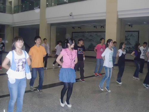 当天晚上7点,大家如期相聚在大学生活动中心一楼。因为部分人早到,部分人没到,我们便组织大家跳了几曲欢快的慢摇,一来热身,一来等一下即将到来的其他人。等到大家都来齐之后,我们首先进行的是身体形态的强化练习,因为身体形态的好与坏直接影响交谊舞舞姿的优美与否,此环节持续了两首音乐的时间。接着,我们强化了一下大家普遍比较薄弱的舞种——快三、快四,快三作为一种快节奏的转圈类型的舞蹈,向来是大家薄弱的一种舞,而快四则作为教得最迟的一种舞,还不为大家所熟悉,所以今晚急需强化这两种舞,根据大家的实际情况,此环节持续了将近一个小时。之后,在接下来的时间里,大家自行强化和练习大家各自的比赛项目,我们则便在一旁为大家指导。不知不觉,舞会快要结束了。我们让大家集合,并对今晚的舞会进行了总结。至此,本次舞会圆满结束。