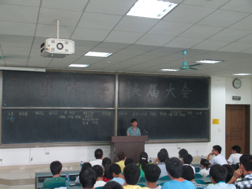 随着本学期活动的结束和期末的到来,希望阵营本学年的活动,任务全部圆满结束。5月18日下午2点30分,换届大会于WT1101隆重召开,出席会议的有大三的学长学姐,现任大二部长主席团和全体大一干事。