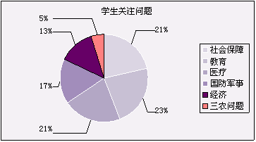 就目前中国存在的诸多问题中,学生的观点主要集中在腐败问题、贫富差距、道德问题、医疗制度和社会公平。