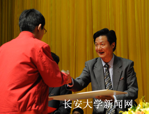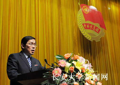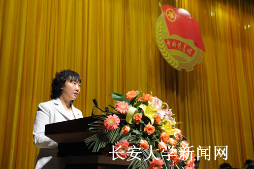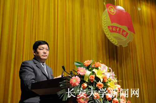 校党委副书记白华宣读《2007--2008学年长安大学共青团获全国及省级表彰文件》