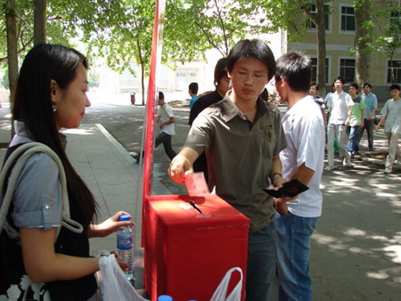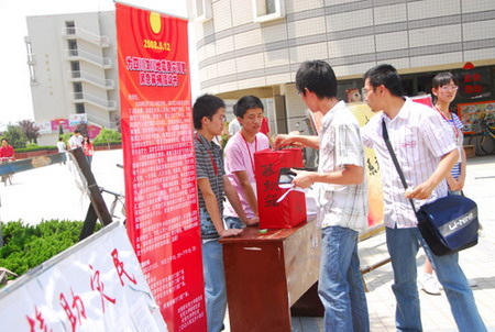 2008年5月15日上午,校团委、校研究生会、校学生会举行的抗震募捐活动在校本部北院教学区、东院教学区、西院教学区学生餐厅门前广场,渭水校区滋兰苑、树蕙园餐厅门前广场同时举行。许多学院学生会、班级、学生社团也纷纷制作了大量的宣传海报、条幅、展板宣传募捐活动,鼓励大家踊跃捐款,用实际行动支援地震灾区。