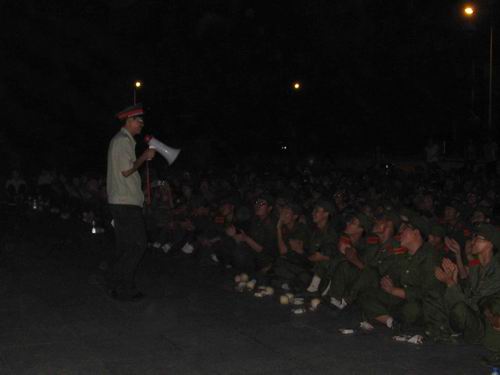 一首时下红动的歌曲《北京欢迎你》拉开了晚会文艺表演的序幕。美妙的歌声还未落定,一首《奔跑》打破宁静,台下顿时欢呼起来。三团教官强有力的歌声如长矛直刺云霄,充满了军人的豪言与壮志。高雅的艺术表演《小提琴演奏》则使师生们受到了艺术的熏陶。我院团委书记朱武威老师也为同学们带来一曲《长征》,可谓寓意深刻,鼓励同学们在以后的军训中发扬红军不怕苦、不怕累的长征精神。在这师生同乐的氛围下,院党委书记曾力老师、校团委刘老师、大一辅导员刘老师也为同学们献上了动听的歌曲。一首大将岳飞的辞赋《满江红》在大一工业设计班全体男生的朗诵下,彰显出了他们满腹的豪情与雄壮的报国之心。整个晚会可谓高潮迭起,精彩不断。