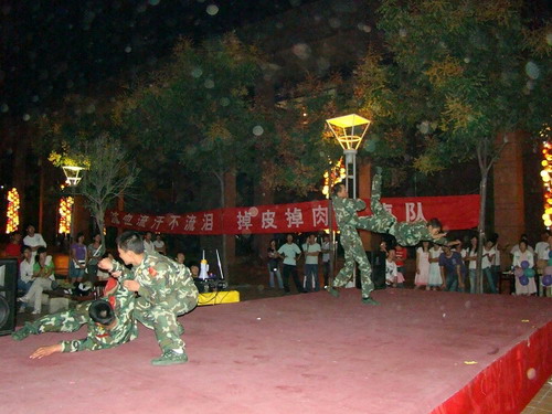 晚会开幕式上,高书记祝愿现场观众在异乡的土地上可以过一个快乐、祥和、丰富多彩的中秋佳节。中秋联欢会以一首活力四射的歌曲《自由》正式拉开序幕。优美动听的歌声、诙谐幽默的小品、婉转悠扬的笛声、激情四溢的恰恰、精心编排的现代热舞把晚会推向一个又一个高潮,赢得了现场观众的热烈掌声。晚会休息环节,组织成员精心设计的互动游戏,更是将台上台下连成一片,欢声笑语此起彼伏。游戏过程中,台下的学员争相为自己的教官加油呐喊,让晚会现场气氛火爆而热烈。联欢会上,祥和快乐的气息让大家深切感受到节日温馨和久违的亲情。