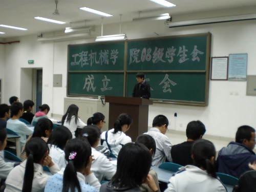 10月10日晚7点,工程机械学院08级学生会成立大会在明远1201教室召开。参加本次大会的有院团委书记朱武威老师、院团委副书记程瑶同学,院学生会主席、副主席,各部部长以及我院08级学生会全体成员。本次大会由院学生会副主席张淼主持。