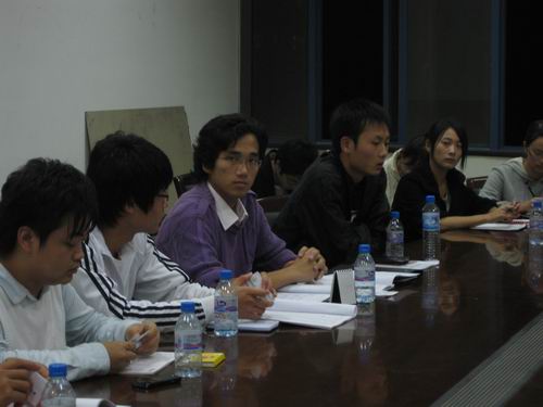首先,校学生会主席朱绍明提出了会议议题并重申了学生会的职能与干部的形象问题。鉴于今年学生会处于转型期,朱绍明指出了四点工作方向:一是以加强内部建设为基础,提升学生会干部的基本素质;二是以服务与维权为重点;三是拓展品牌性效应;四是完善学生会的机构设置,重点建设学生提案委员会,学生安全委员会及学生医疗委员会等新增机构。