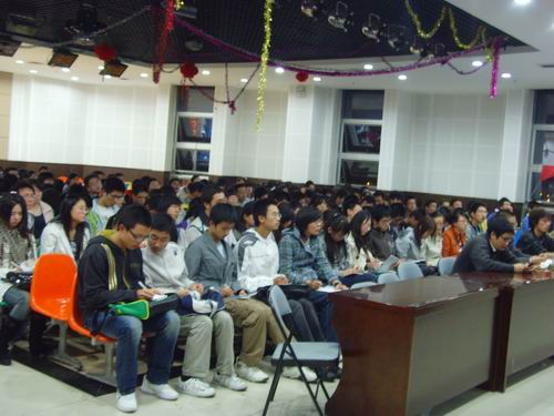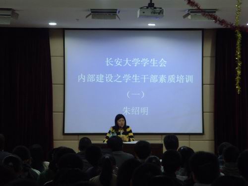 为了培养08级新生干部综合素质,2008年10月26日晚7点,由校学生会主办的长安大学学生会内部建设之学生干部素质培训,在大学生活动中心三楼多功能厅成功举办。讲座邀请了学生会主席朱绍明同学为大家进行培训。短短的两个小时内,朱绍明主席以自己的亲身经历,亲身感悟和幽默风趣的语言,为同学们将来在学生会的工作指明了方向。