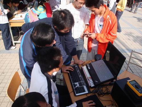 上午活动在西区举行。凭借先进的设备、高超的技术和热情的服务态度,活动开始不久就吸引了大批的人前来维修或咨询。其中大部分人是进行存储工具的杀毒,还有部分同学前来为自己的电脑安装杀毒软件或者进行购机咨询。在短短的三个小时内,技术服务部已成功为近60人解决了难题。下午活动场地移至东区。虽然大二大三的同学功课紧张,但仍有不少人将电脑拿到活动现场维修或就系统方面的问题进行咨询。至活动结束时,已有近百人享受到了服务部优质高效的服务。
