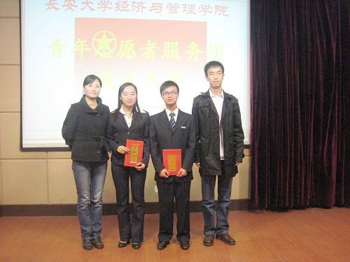 成立大会首先由经管学院团委副书记吕坤同学发言,她向大家讲述了青年志愿者服务团的服务宗旨、工作性质和工作任务,并宣读了第一届青年志愿者服务团的成员名单。王翀老师和曹玮老师为梁志埠团长、蒋道茹副团长颁发聘书,并鼓励他们做好工作。