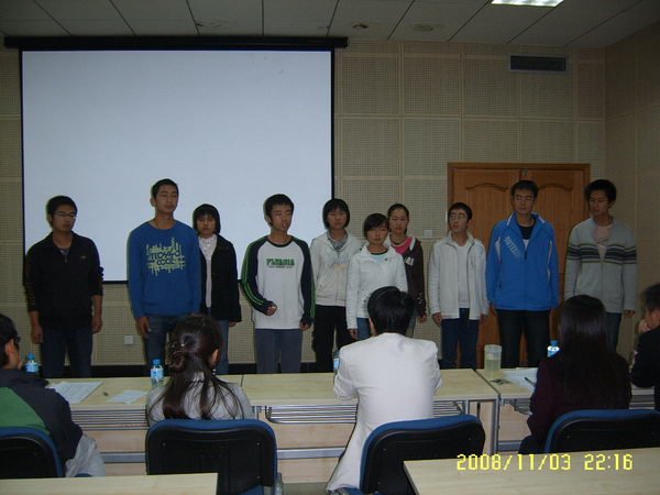 比赛如火如荼进行的同时,场外等候的同学也没有闲着。在工作人员的安排下,大家都有秩序地等候比赛,并且都在认真准备自己的朗诵作品。笔者注意到,选手大多都比较轻松从他们的交流中也可看出选手们已经过了充分的准备,对自己都信心十足。