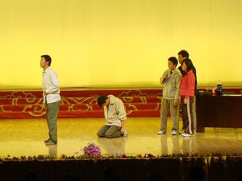 整场晚会精彩纷呈,高潮迭起。同学们用激情四溢的热舞派对,幽默诙谐的小品,精湛的书法、绘画、剪纸的现场表演,穿越古今的时代对话,青春活力的健美表演……演绎出一幕幕精妙绝伦的青春之歌;小品《父亲》表现了伟大而深厚的父爱,深深地感动了全场的观众;话剧《梁祝新编》风趣、诙谐的语言,形式活泼的表演,逗得观众的捧腹大笑;研究生同学表演的土耳其舞蹈《美丽的姑娘》让我们领略了别样的异域风情;05级辅导员林祖梅老师一曲《黄河渔娘》,把晚会的气氛推向高潮;08级辅导员杨树老师的《暗香》赢得了同学们的热烈掌声;由06级辅导员吕志胜老师携06级全体学生党员表演的诗歌朗诵《2008,我们与祖国同行》则代表80后的青年向祖国表达他们的心声,表现了党员为人表率,敢为人先的风范……最终晚会在舞蹈《朝阳材子》的精彩表演中完美落幕。