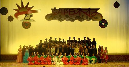 曲终人未散,各位领导嘉宾与演员们合影留念,让我们永远记住这个美好的夜晚。此次晚会的成功举行受到了各位领导嘉宾的一致好评,相信在以后的大型文艺活动中材料学院一定会有更加完美的表现。