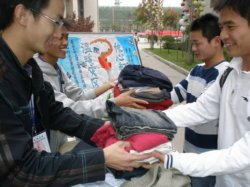 为响应党和国家领导人“关爱灾区人民,切实做好灾区人民防寒越冬工作”的号召,1 1月8日至9日,在校团委支持下,我校青年志愿者服务总队在树惠园广场和兹兰苑广场举办了“爱心有我•温暖灾区”主题捐赠活动,为灾区人民奉献爱心。
