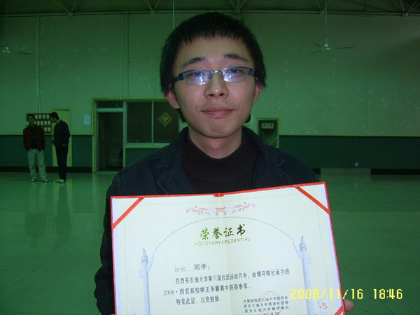 11月16日,我校博弈协会应西安石油大学之邀参加由其举办的棋王争霸赛.此次的棋王争霸赛由西安石油大学主办.西安交通大学,陕西师范大学,西安电子科技大学等18所高校参加了此次棋王争霸赛,各高校均选派了5名选手参加比赛.
