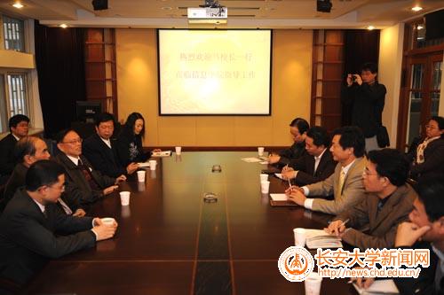 座谈会上,马建校长听取了我院院长赵祥模关于常心泰、邹理和两位美籍教授在学院工作情况的汇报。常心泰教授是美籍软件工程专家,受聘为我校计算机软件及理论学科全职教授;邹理和教授是美国路易斯安那理工大学终身教授,受聘为我校信息与通信工程学科兼职教授,邹教授目前在我校进行为期半年的工作和讲学。两位外籍专家在校工作期间,通过做系列学术报告、召开专题座谈会、指导研究生、合作开展科学研究、参与国家级双语教学示范课程建设等多种形式的交流与合作,在我校信息学院的学科建设、科学研究、人才培养等方面发挥了重要作用。通过两位外籍教授的工作,进一步开阔了学院师生的学术视野,带动了学院的学术氛围,使广大师生在跟踪国际学科前沿技术方面受益匪浅。同时,两位教授的工作作风、敬业精神也给学院师生留下了深刻的印象。