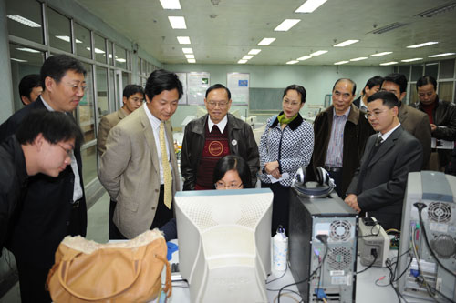 座谈会结束后,马建校长一行参观了我院计算机专业开放实验室,与正在做实验的学生交谈,了解相关情况。他对我院面向全校开展的开放实验工作给予了高度评价,并表示学校将积极倡导和鼓励更多的实验室面向学生开放,大力支持学生的自主创新活动,希望取得更多的开放实验成果。