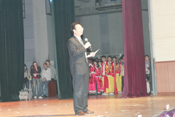 院党委书记王景荣为大赛致辞。他对08级同学的到来表示热烈欢迎的同时,提出我院的学生素质教育工程是在我校“特色强校质量工程”的指引下和“两个转变”的奋进中,以培养适应21世纪的高素质人才为目标,培养创新意识、创新素质、创新能力为核心,而策划组织实施了本次风采大赛。本次大赛也标志着我院学生素质教育工程的正式启动。最后他预祝首届风采大赛能够圆满成功。