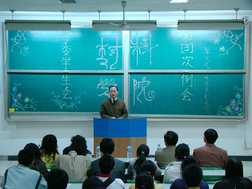接下来,陈院长也发表了重要讲话。首先陈院长就材料学院晚会在学校引起的一致好评感到由衷的高兴,称此次晚会在思想性与艺术性上都达到了较高的水平,对参与晚会的所有师生的辛苦工作表示衷心的感谢。陈院长要求广大学生干部把学院的发展和自身的成长紧密联系起来,处处发挥模范带头作用,把材料学院学生工作搞得更加有声有色。最后,陈院长从科研成果、就业方向等方面,向大家展现了材料学院广阔的发展前景。分管学生工作的高书记也发表了热情洋溢的感言,他认为学生干部是学院的脊梁,在各种活动中扮演着重要角色,他希望大家以认真的态度为材料学院的美好明天而努力。