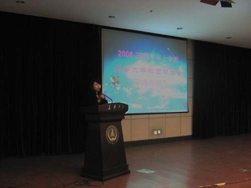其次,财务部部长肖道宏对财务报账做了相关分析;网络信息部副部长王媛、宣传部部长郑文浩介绍了社团活动应注意的几个问题,他们承诺:一定会本着 “帮助小社团、支持中等社团、协助大社团”的原则,搞好各类活动的宣传工作。