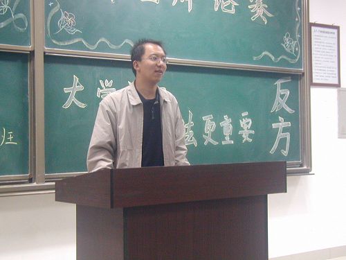 由长安大学地测学院团委学生会主办、地测学院科技协会承办,地测学院08届新生辩论赛决赛于2008年11月20日晚上7:00时在长安大学渭水校区明远3201教室举行。到场嘉宾和评委有地测学院朱老师、孟老师,汽车学院魏老师,校团委朱老师,建工学院王老师和地测学院团委学生会各常委。汽车学院评委魏老师对此场辩论赛做了精彩点评。