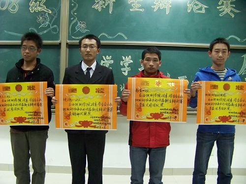 随后激动人心的时刻到来,主持人宣布颁奖,至此,地测科协08届新生辩论赛圆满成功!