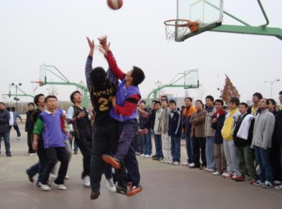 2008年11月26日中午,公路学院迎新篮球赛之冠军争夺赛在07、08桥3联队和隧1联队之间展开,比赛依旧分为08级和07级对抗两种形式。院党委副书记廖谦,院学生会秘书长高天智,辅导员卢毅、常嵘老师也一起观看了比赛。