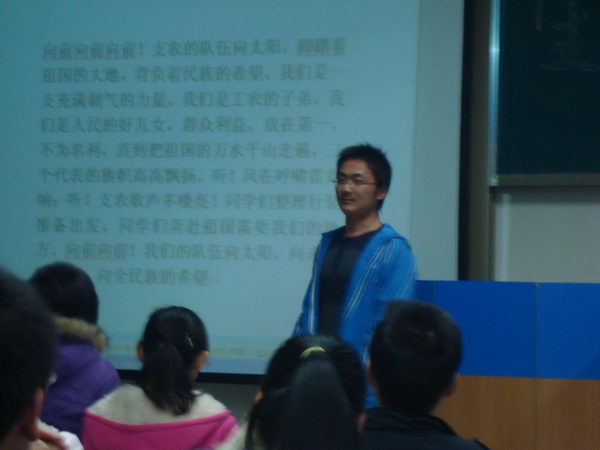 会议第三项,由副秘书长段崇彬,副团支书刘靖宇向各队员教唱支农队歌,激扬铿锵的节奏给会场增添不少情趣,也使大家的热情空前提高,使大家对支农支教活动充满期待和向往。此外,秘书长杜恒山还对大家进行了下乡纪律培训,强调安全第一。他还叮嘱了一些活动备用问题,这些小细节的强调将对本次活动的成功起到良好的推动作用。