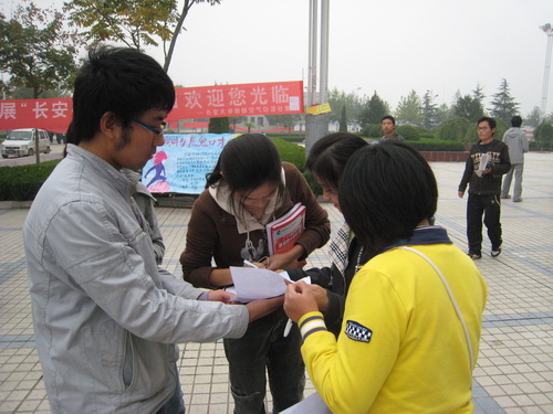 10月30日,长安大学经济与管理学院物流一班在校园内开展了纪念改革开放三十周年——“春花秋实”系列活动。经济与管理学院08级学生辅导员孙翔洲老师、院团委副书记吕坤同学、学生会主席梁志埠同学等均来到活动现场。